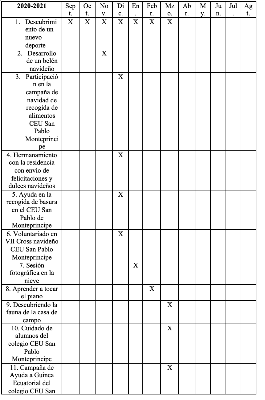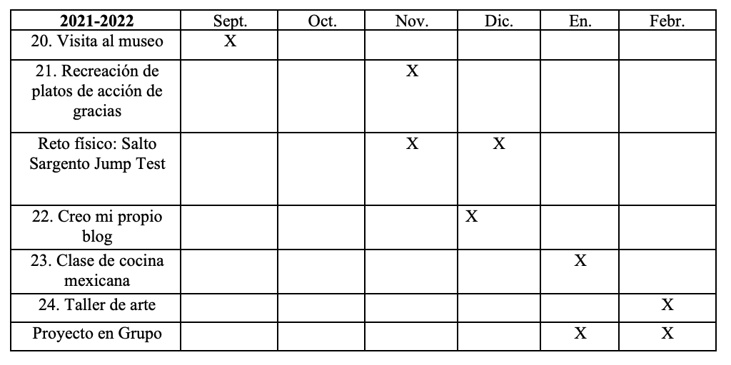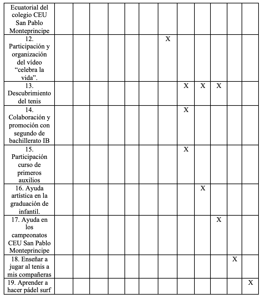 Temporalización de la carpeta CAS dividido en dos años. Con un total de 24 experiencias realizadas.